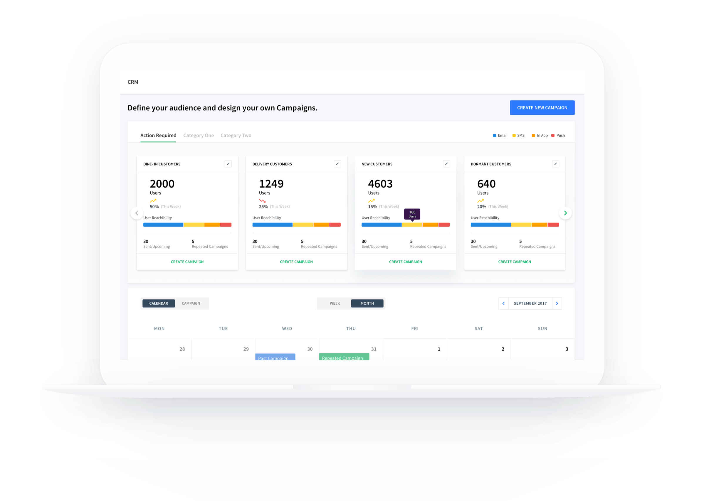 Re-engage your customers with pre-built segments that are tailor made to meet your retention goals. Our CRM automatically segments your customers into new, active, inactive and dormant categories, so that you can send out campaigns that are more likely to result in sales.