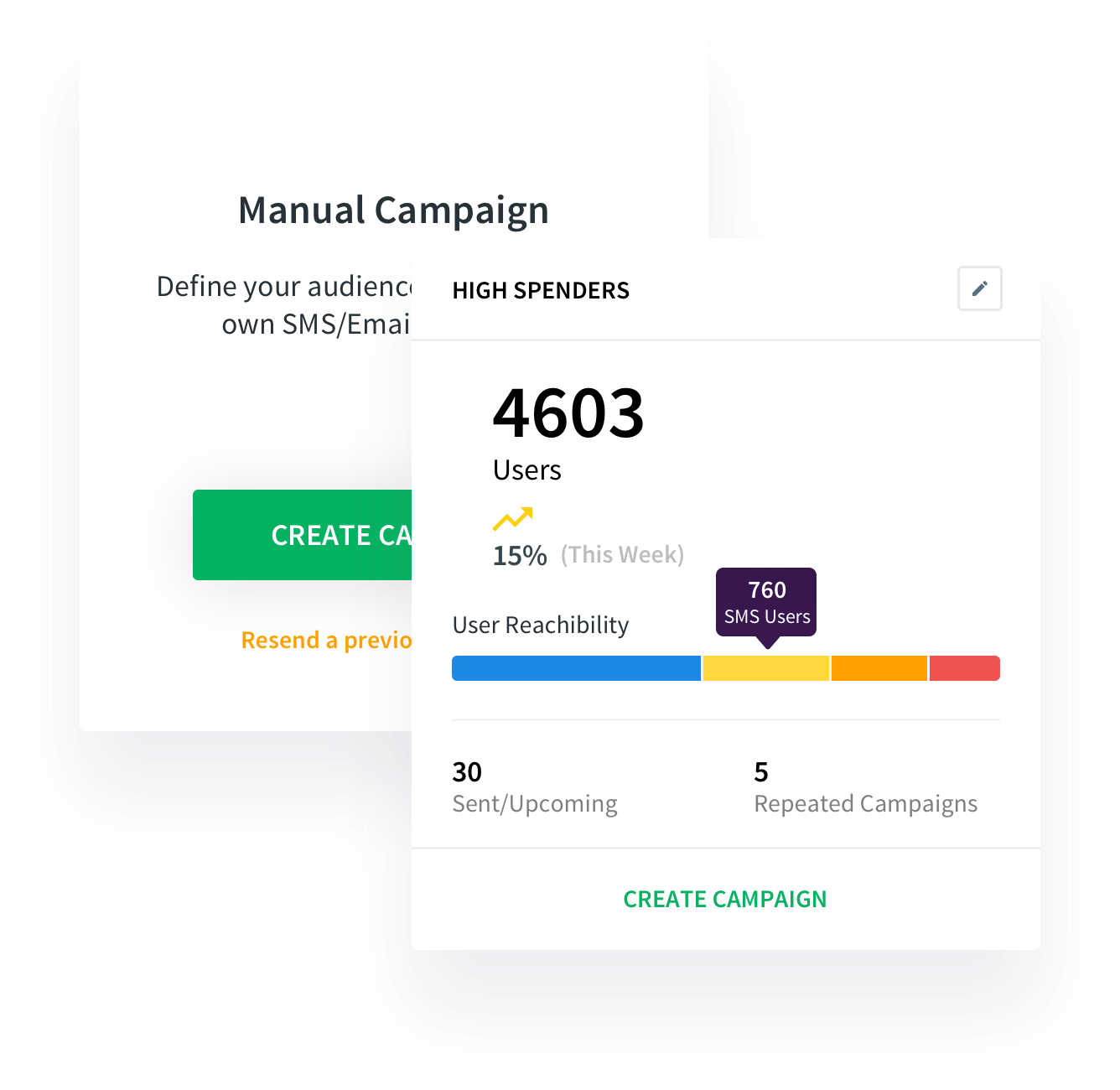 With Reach, you can create & send email, SMS & Push notification campaigns in just a few clicks.